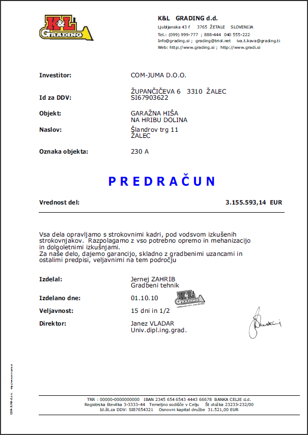 poleg logotipa podjetja tudi že skeniran žig in podpisi