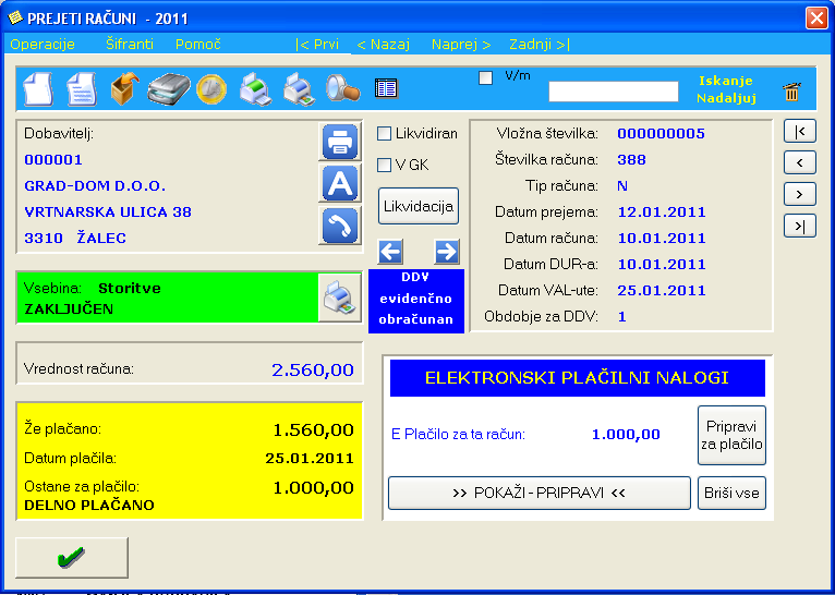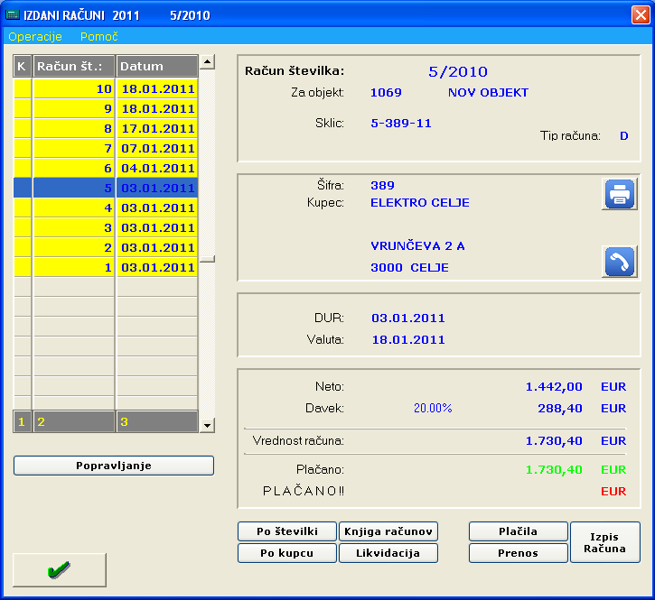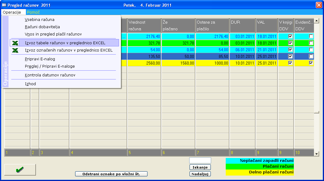 sortiranje po poljubnih parametrih in hiter pregled neplačanih